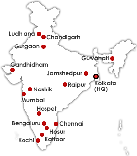 In keeping with our ever expanding enterprise, we have moved on from the times when we managed with a solitary office in Calcutta. Today, offices at Chennai, Mumbai, Bangalore, Chandigarh, Ludhiana, Gurgaon, Raipur, Nashik, Gandhidham, Guwahati, Jamshedpur, Kochi, Coimbatore, Hosur and Hospet testify to our status and solidity of purpose and we are recognized as a Pan India Company.